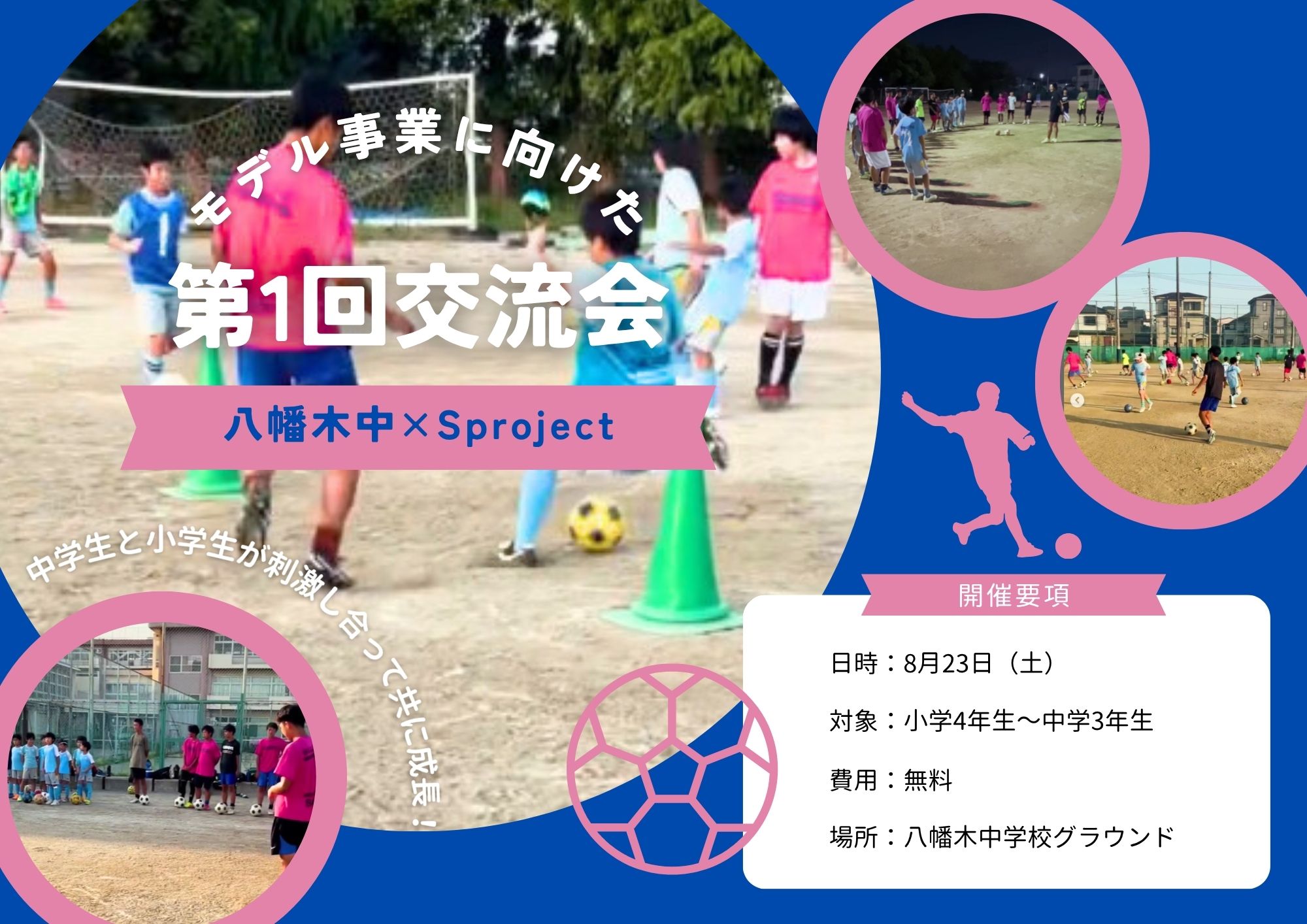 今回は、S PROJECT F.C.の選手と八幡木中学校サッカー部のみが対象。他のスクール生や、他校の生徒の参加は次回となります。